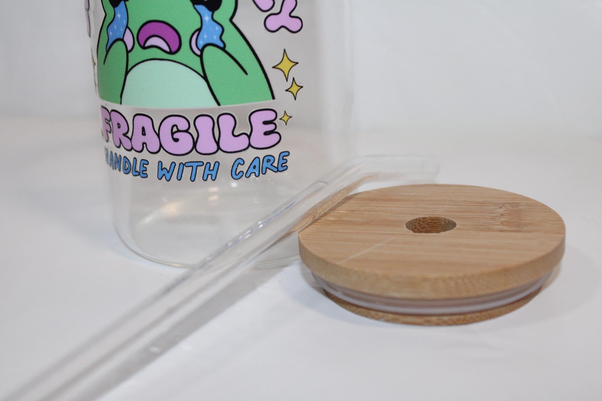 Emotionally Fragile 16oz Glass Cup — With Lid & Straw